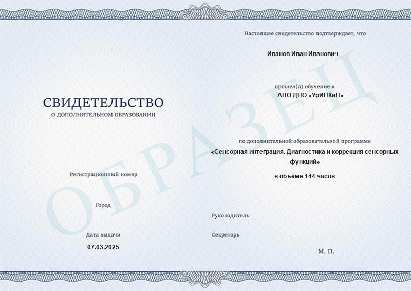 Сенсорная интеграция. Диагностика и коррекция сенсорных функций (144ч)